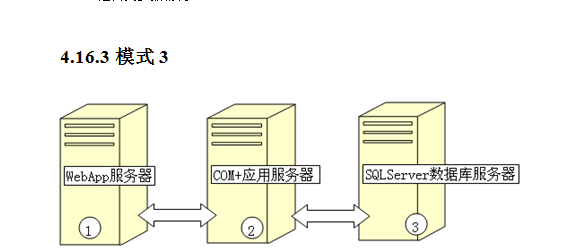 在该模式中,进一步把WebApp服务器与COM+应用服务器分开,适合超高负荷应用的情况,并可以采用集群技术来提高系统的可靠性。