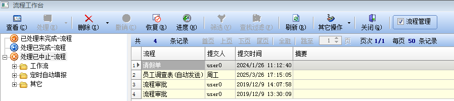 这时候,林经理就可以在他有权限的范围内对各个流程执行监督工作了,包括查看数据、查看流程流转情况等操作。